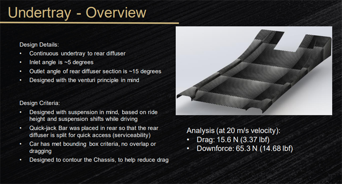 Formula SAE is an internationally recognized engineering design competition open to undergraduate and graduate students where students design, manufacture, and test an open-wheeled formula style race car. This year’s team aims to prepare the car to go to competition at FSAE West (in Las Vegas, NV this year), since last year’s team was unable to go to competition due to the untimely outbreak of the Coronavirus pandemic, which shut down all production on the car. This year’s team was allowed to inherit the existing car to complete its manufacturing and finish in time for competition this summer, since it never made it there last year. So far, even with such a small team of seniors this year (now down to only five senior members), the majority of the car’s work is complete, and the has been driven multiple times and testing and tuning has begun. Most of the senior’s efforts this year have been focused on developing and manufacturing a full aerodynamics package for the car to improve vehicle handling during competition, which will make this year’s car the first car to have an aerodynamics package since 2017.